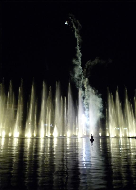 Été 2009, dans le bassin devant la médiathèque.